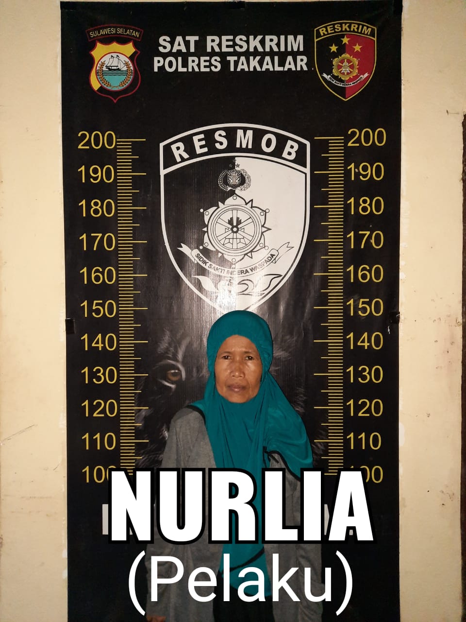 pelaku Nurlia (40) telah di amankan di mapolres takalar guna mempertanggung jawabkan perbuatannya sesuai Undang undang yang berlaku, jelas dantim Resmob polres Takalar Aipda Hutbah