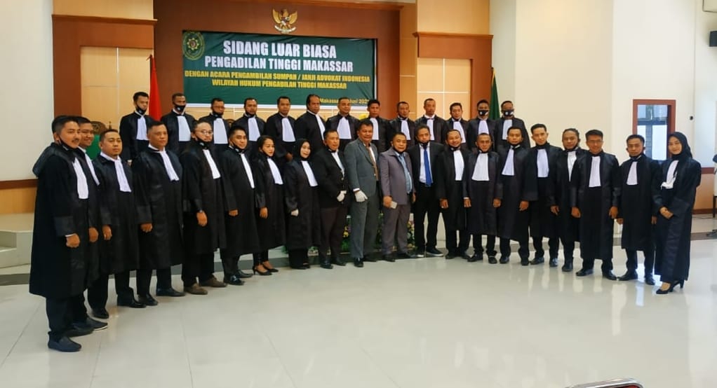 SULSELBERITA.COM. Makassar ,Puluhan Advokat dari Dewan Pimpinan Nasional ( DPN ) Perkumpulan Advokat Muslim Indonesia ( PERADMI ) diambil sumpah dan janji pada sidang luar biasa Pengadilan Tinggi Makassar Wilayah Sulawesi Selatan dan Barat ( Jumat,04 Juni 2021 ).