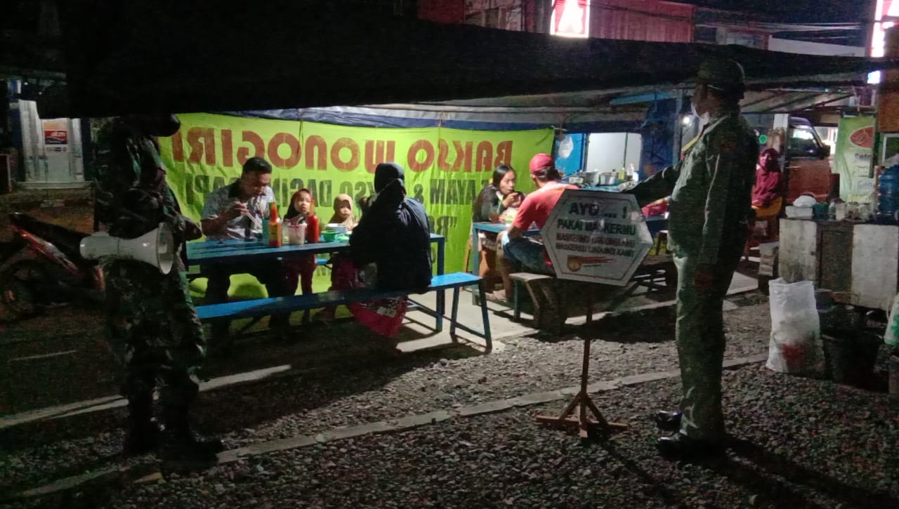 SULSRLBERITA.COM. Boyolali. Dalam rangka pencegahan Virus Corona (Covid-19), Anggota Koramil 10/Sambi Kodim 0724/Boyolali dipimpin Serka Heri Prasetyo melaksanakan kegiatan patroli prokes diwilayah guna memberikan himbauan kepada warga binaannya, terutama di tempat tempat yang rawan adanya kerumunan warga termasuk diantaranya Warung Desa Sambi Kecamatan Sambi Kabupaten Boyolali, Kamis Malam (04/06).‎