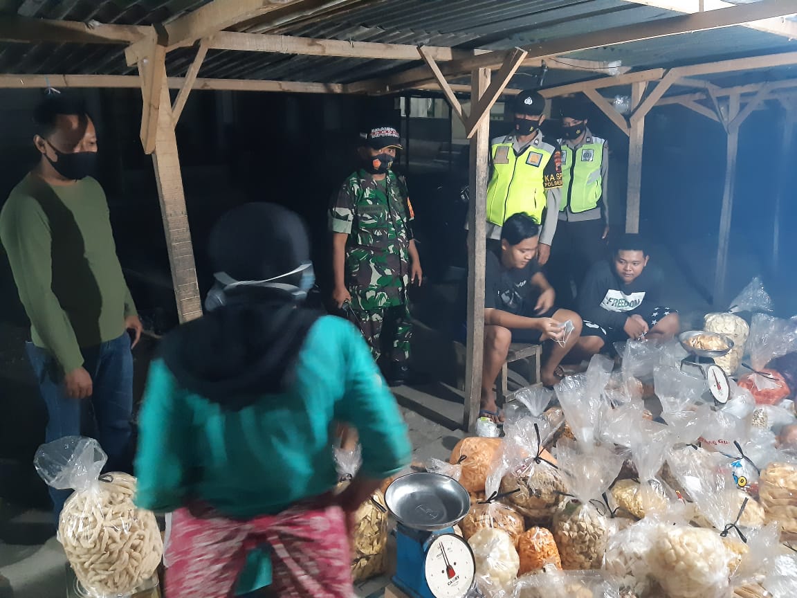 SULSELBERITA .COM.Sukoharjo (04/06/2021)-Guna pencegahan penyebaran Covid-19 berbagai langkah terus dilakukan oleh Koramil 07/Gatak bersinergi dengan Polsek Gatak di masa Pandemi Covid-19 ini, dengan terus menghimbau Protokol kesehatan 5 M (memakai masker, mencuci tangan, menjaga jarak, menjauhi kerumunan, mengurangi mobilitas) kepada warga dan pedagang di seputaran Pasar Blimbing Kec. Gatak Kab. Sukoharjo, Kamis Malam (04/06).