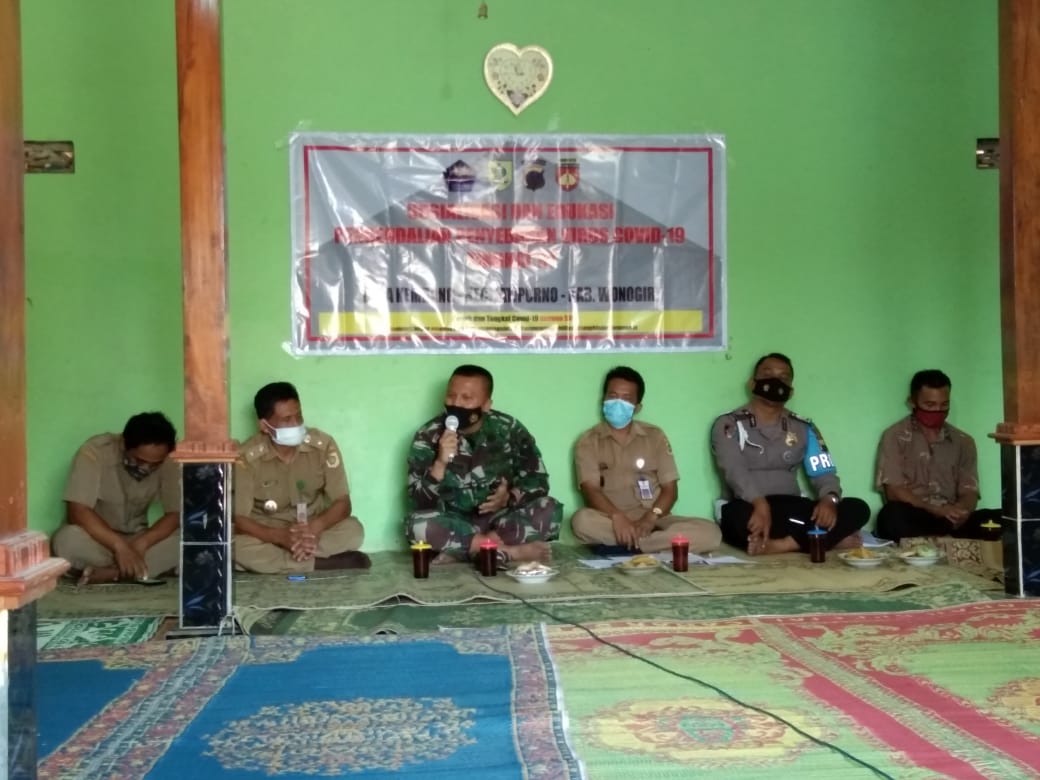 Babinsa menyampaikan, kegiatan Sosialisasi dan edukasi pengendalian penyebaran virus Covid-19 dan vaksinasi oleh Satgas PPKM Mikro Desa Kembang ini, merupakan kegiatan rutin yang dilaksanakan dengan tetap memperhatikan protokol kesehatan.