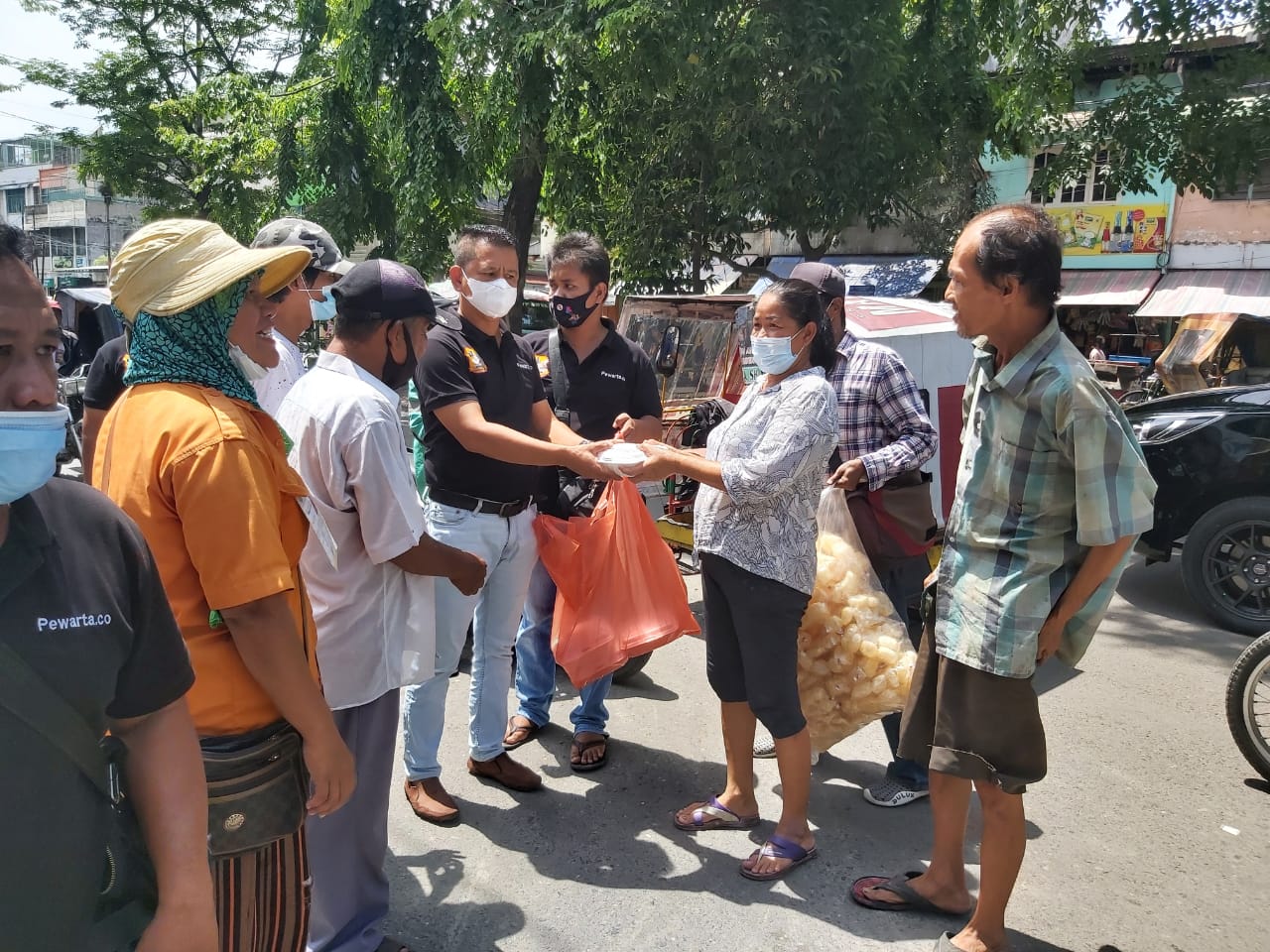 SULSELBERITA.COM. Medan, – Dalam rangka Jum’at Barokah,  Ketua Persatuan Wartawan Polrestabes (Pewarta) Medan, Chairum Lubis SH melaksanakan giat bagi nasi kotak kepada abang beca,ojek online,juru parkir dan supir angkot dan petugas kebersihan di Jalan AR.Hakim ,Jalan Asia,Jalan Emas dan depan Komplek Asia Mega Mas, Jumat (25/6/2021) siang.