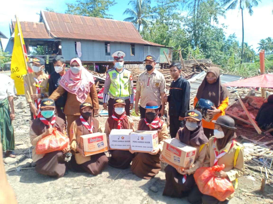 Peduli Korban Banjir, Sat Lantas Polres Bantaeng bersama Saka Bhayangkara Serahkan Sembako