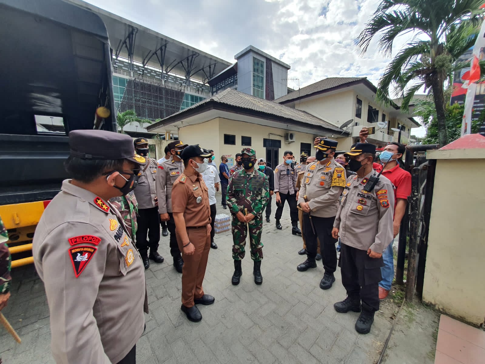 Sebagai bentuk kepedulian, Kapolda Sumatera Utara Irjen Pol Panca Putra dan Pangdam I/BB Mayjen TNI Hasanuddin, memberikan bingkisan berupa makanan dan minuman kepada personil gabungan yang bertugas menjalankan PPKM darurat di Mapolsek Medan Timur, Senin (19/7/2021).