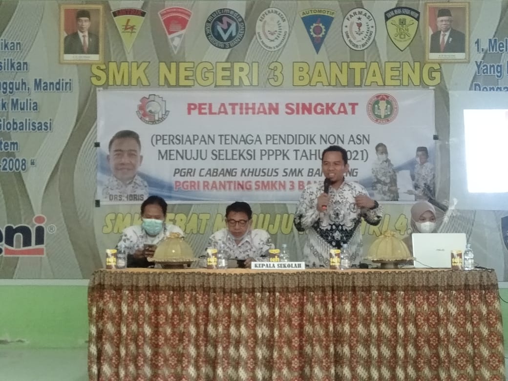 SULSELBERITA.COM. Bantaeng, – Setelah sebelumnya mengadakan Pelatihan singkat, Persatuan Guru Republik Indonesia (PGRI) Cabang Khusus SMK Bantaeng kembali menginisiasi pelatihan bagi tenaga pendidik non ASN guna mempersiapkan seleksi Pegawai Pemerintah dengan Perjanjian Kerja (PPPK) di SMK Negeri 3 Bantaeng Desa Nipa-Nipa Kecamatan Pa’jukukang Bantaeng, Sabtu 14 Agustus 2021.