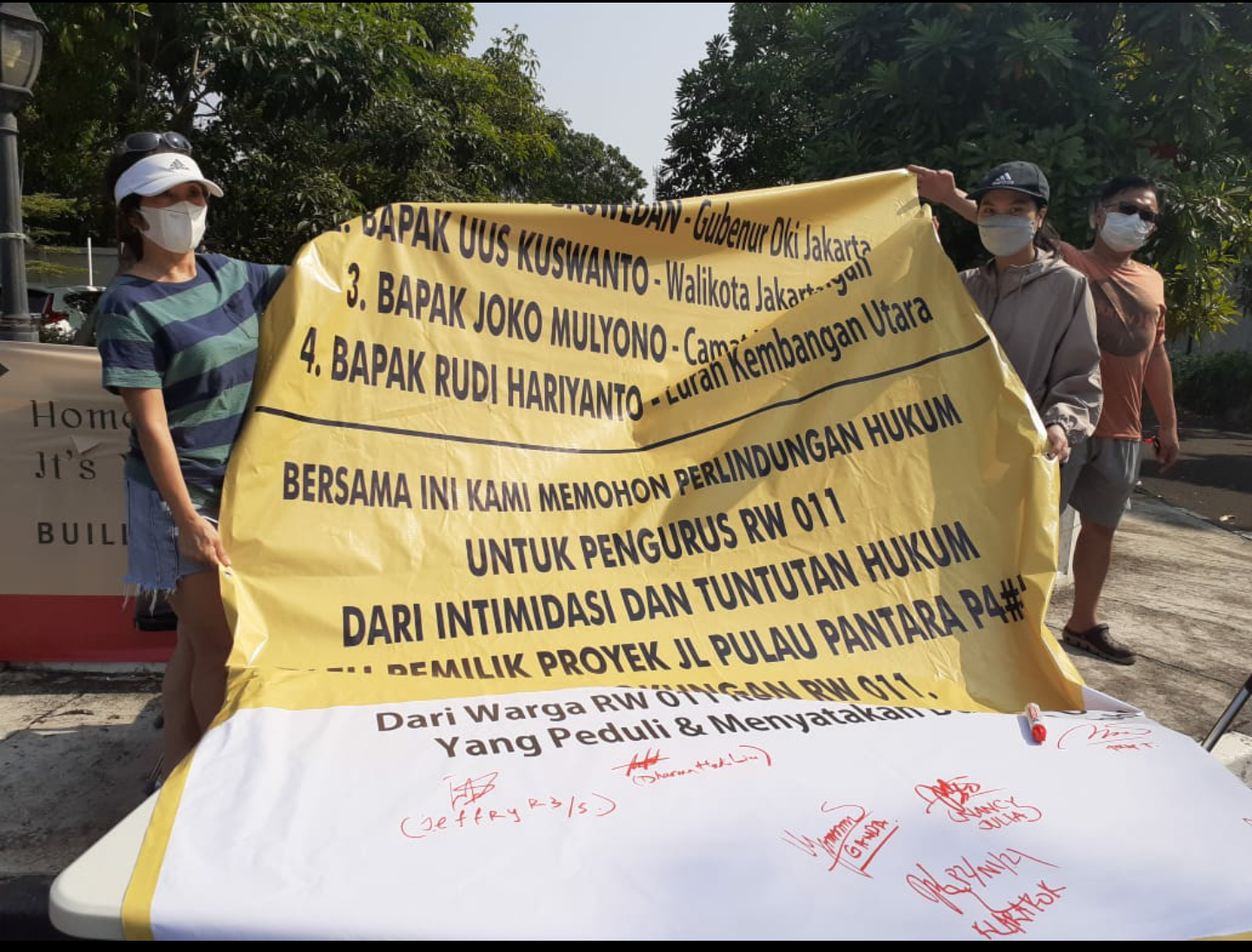 Menurut Ibu Merlin, aksi ini murni atas keprihatinan warga yang diintimidasi oleh salah satu warga yang tak sependapat dengan para pengurus RT dan RW.