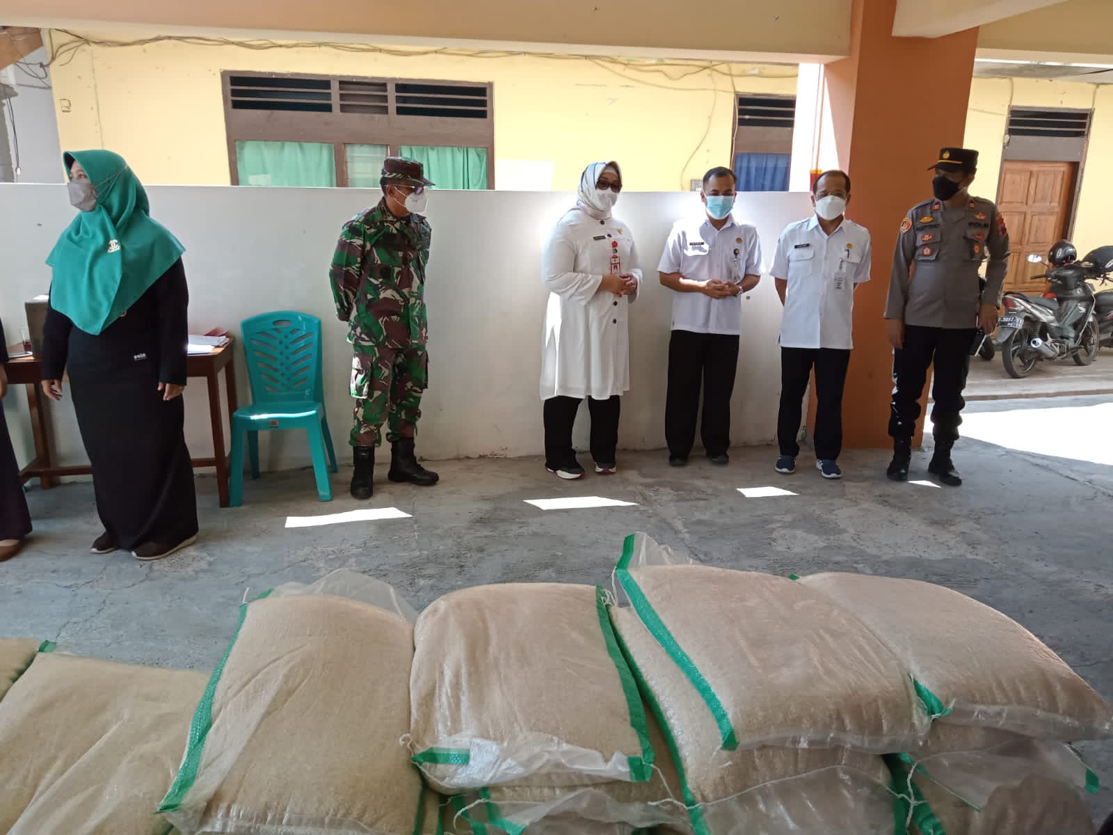 Danramil 02/Karangmalang Kapten Inf Prihatin Yudho terjun langsung memantau pelaksanaan pendistribusian. Kegiatan juga di kunjungi oleh dr. Kusdinar Untung Yuni Sukowati (Bupati Sragen) beserta stafnya diantaranya Kabag um Aris Tri Hartanto SSTP, Tugiyono SH (Plt Asisten 1), Agus Cahyono, S.STP (Plt Ka BPBD Kab. Sragen), Dr. Hargiyanto M Kes (Ka DKK Sragen), Dwi Agus Prasetyo SSTP Msi (Kabag Kesra), Nugroho Dwi Wibowo S. Stp (Plt Camat Karangmalang) dan Kapolsek Karangmalang AKP Mulyono.