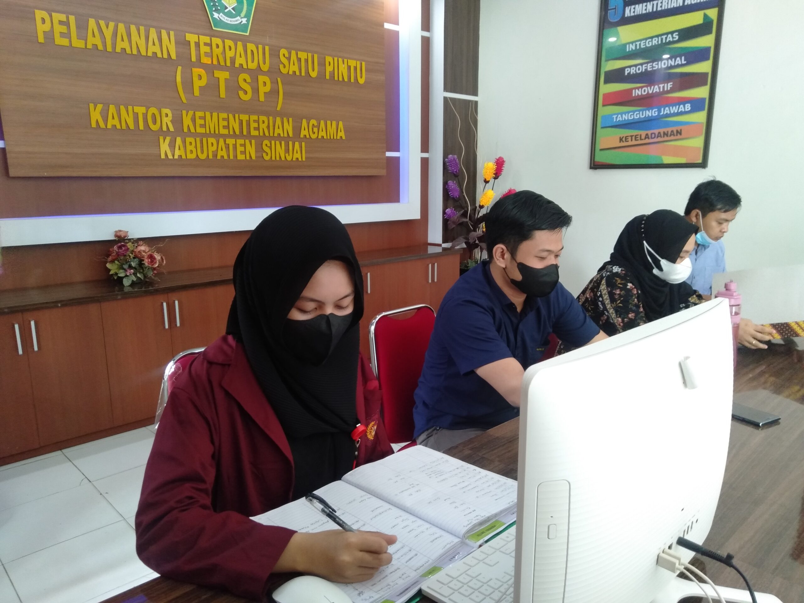 Salah satu Mahasiswi Universitas Muhammadiyah Sinjai Andi Aldana Jurusan Ilmu Administrasi Negara mendapat kesempatan melaksanakan magang disalah satu Instansi Vertikal di Kabupaten Sinjai yaitu Kantor Kementerian Agama Kab Sinjai yang ditempatkan di bagian Pelayanan Terpadu Satu Pintu (PTSP) sebagai tempat untuk magang bersama dengan 6 Orang Mahasiswa/i lainya yang di tempatkan di tiap seksi/Penyelenggara Pada Kemenag Sinjai ,Jumat 3 September 2021.