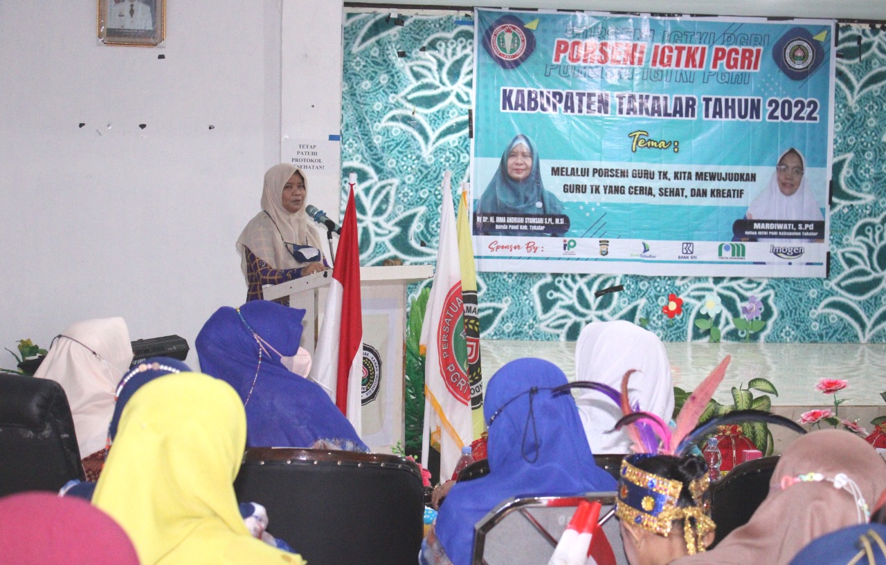SULSELBERITA.COM. Takalar- Prokopim (Selasa, 15/3/2022). Pekan Olahraga dan Seni (Porseni) Ikatan Guru Taman Kanak-Kanak Indonesia (IGTKI) Persatuan Guru Republik Indonesia (PGRI) Kabupaten Takalar berlangsung di Gedung PKK Kabupaten Takalar.