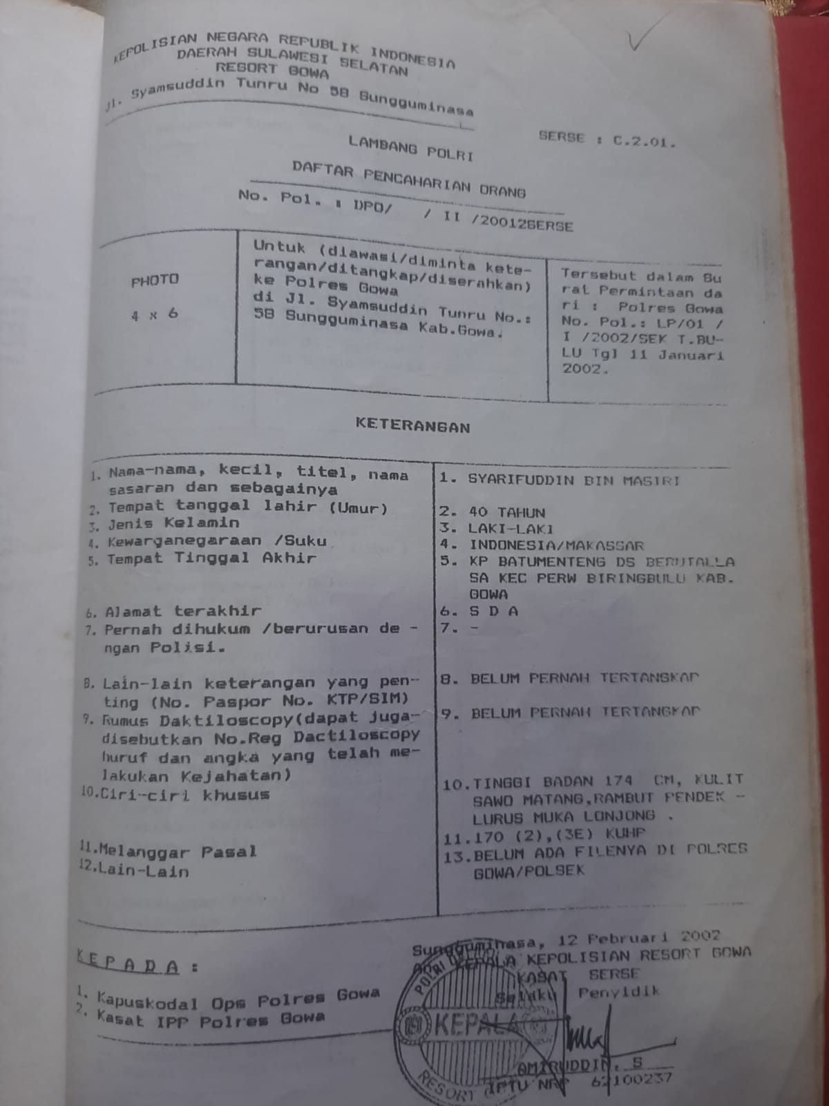 Dengan kedatangan keluarga korban pembunuhan H.Rajiwa dikantor DPP Lsm Gempa Indonesia untuk memohon perlindungan hukum atas kematian orang tuanya karena pelaku utama SYARIFUDDIN BIN MASSIRI yang terdaftar dalam DAFTAR DPO masih berkeliaran, olehnya itu Ketua DPP Lsm Gempa Indonesia menyurati bapak Kapolda Sulawesi Selatan atas berkeliarannya beberapa Pelaku pembunuh H.Rajiwa dan melampirkan beberapa daftar DPO dari Polres Gowa dan daftar DPO adalah SYARIFUDDIN BIN MASSIRI CS.
