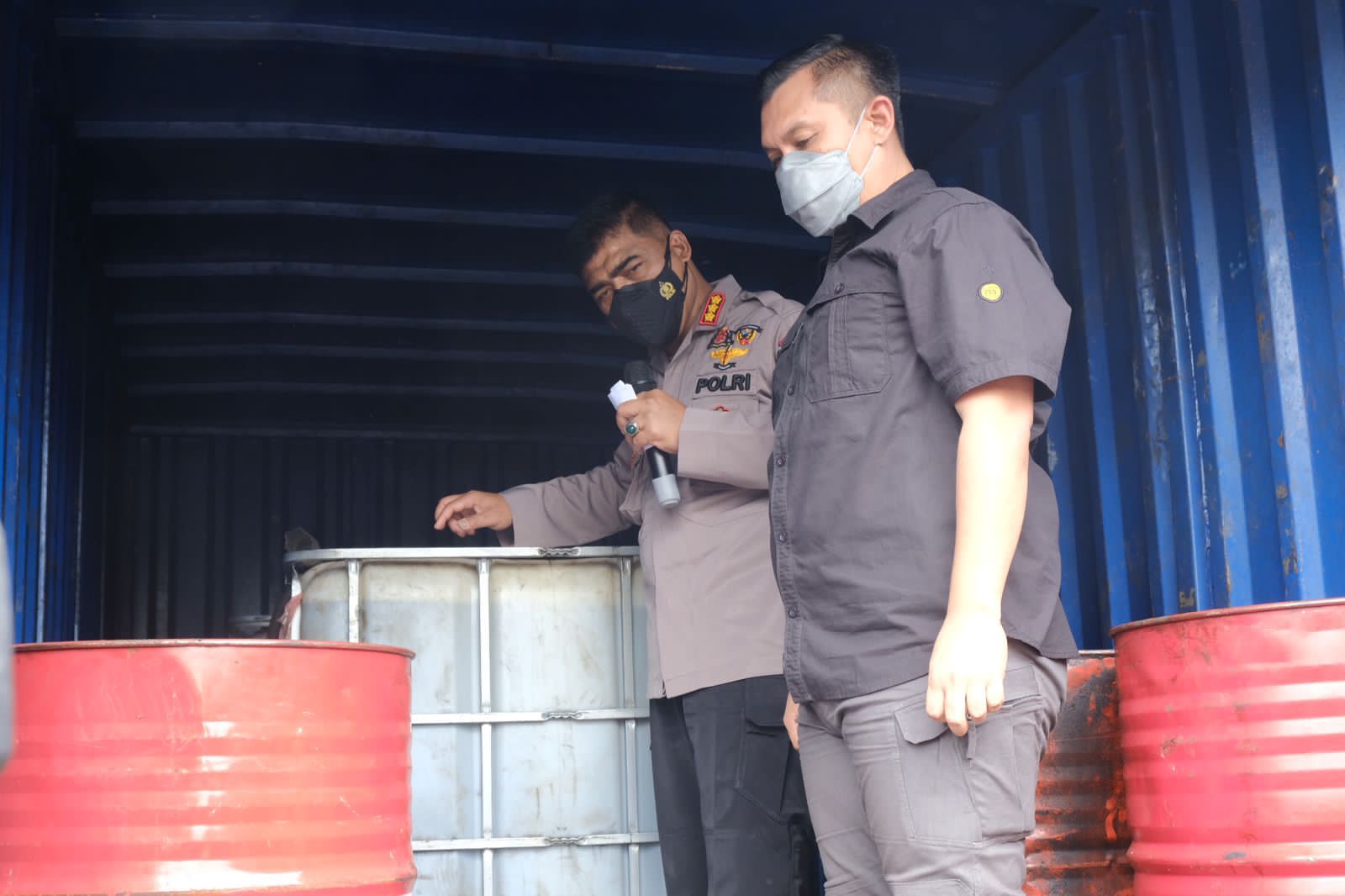“Dioplos (dicampur) di gudang ini, dengan komposisi tertentu sehingga menghasilkan mirip seperti solar non subsidi,” terang Kabid Humas Polda Riau Kombes Sunarto dalam jumpa persnya bersama Direktur Reskrimsus Kombes Ferry Irawan dan didampingi Kasubdit IV AKBP Dhovan Oktovianto, Kamis (7/4/2022) siang.