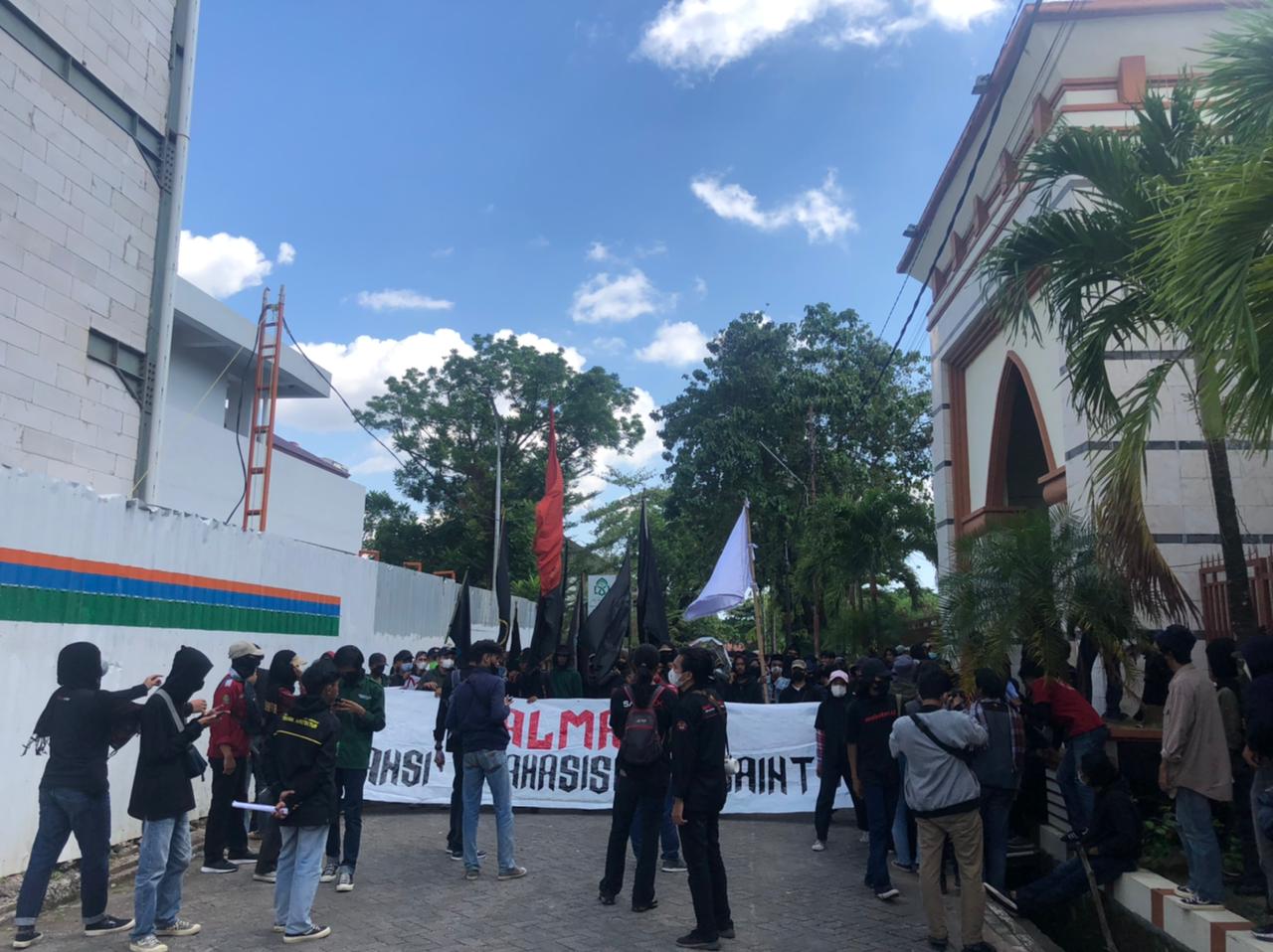 ALMASI UIN Alauddin Makassar (UINAM) Gelar Aksi Unjuk Rasa di Depan Kampus I UINAM