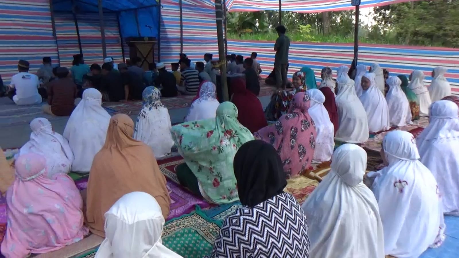Rasa syukur itu, terucap setelah sejumlah dermawan atau komunitas datang meninjau masjid yang dibangun warga dari bambu yang beratap dan berdinding kan terpal itu untuk di berikan bantuan.