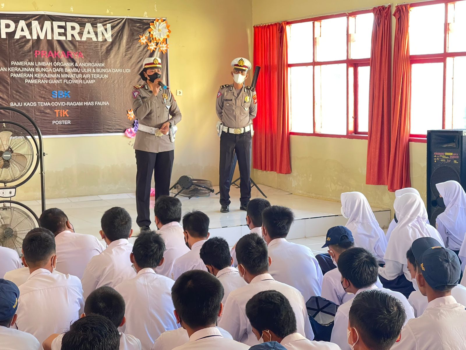 “Kedatangan kami ke sekolah merupakan upaya mensosialisasikan dan untuk menggalakkan tertib lalu lintas kepada pelajar agar tidak menggunakan kendaraan bermotor ke sekolah, terkhusus bagi pelajar yang belum cukup umur dan belum memiliki SIM,” Ujar Kasat Lantas.