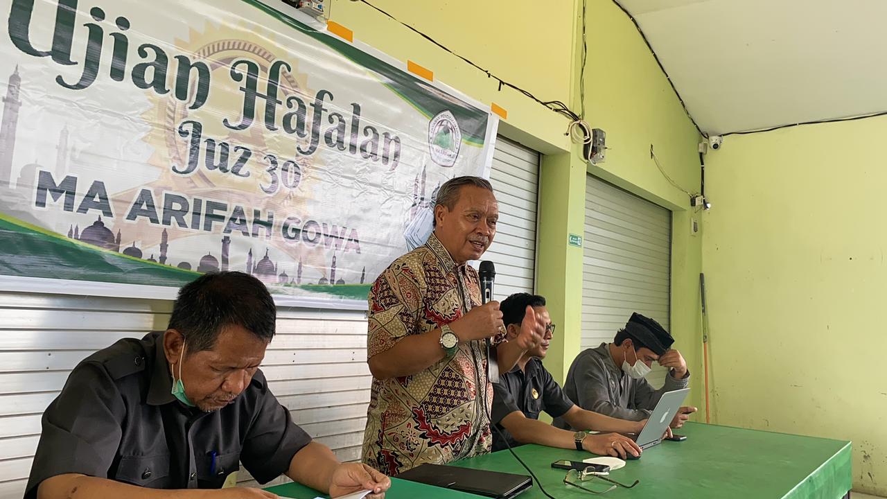 SULSELBERITA.COM. Gowa – Sebanyak 18 dari 21 siswa lulusan Madrasah Aliyah Arifah Gowa bebas tes masuk ke Perguruan Tinggi Negeri Melalui Jalur undangan, demikian disampaikan oleh Ridzan Djafri Kepala MA Arifah saat menghadiri kegiatan ujian hafalan juz 30 bagi siswa MA Arifah di Pallangga Gowa (16/4/22).