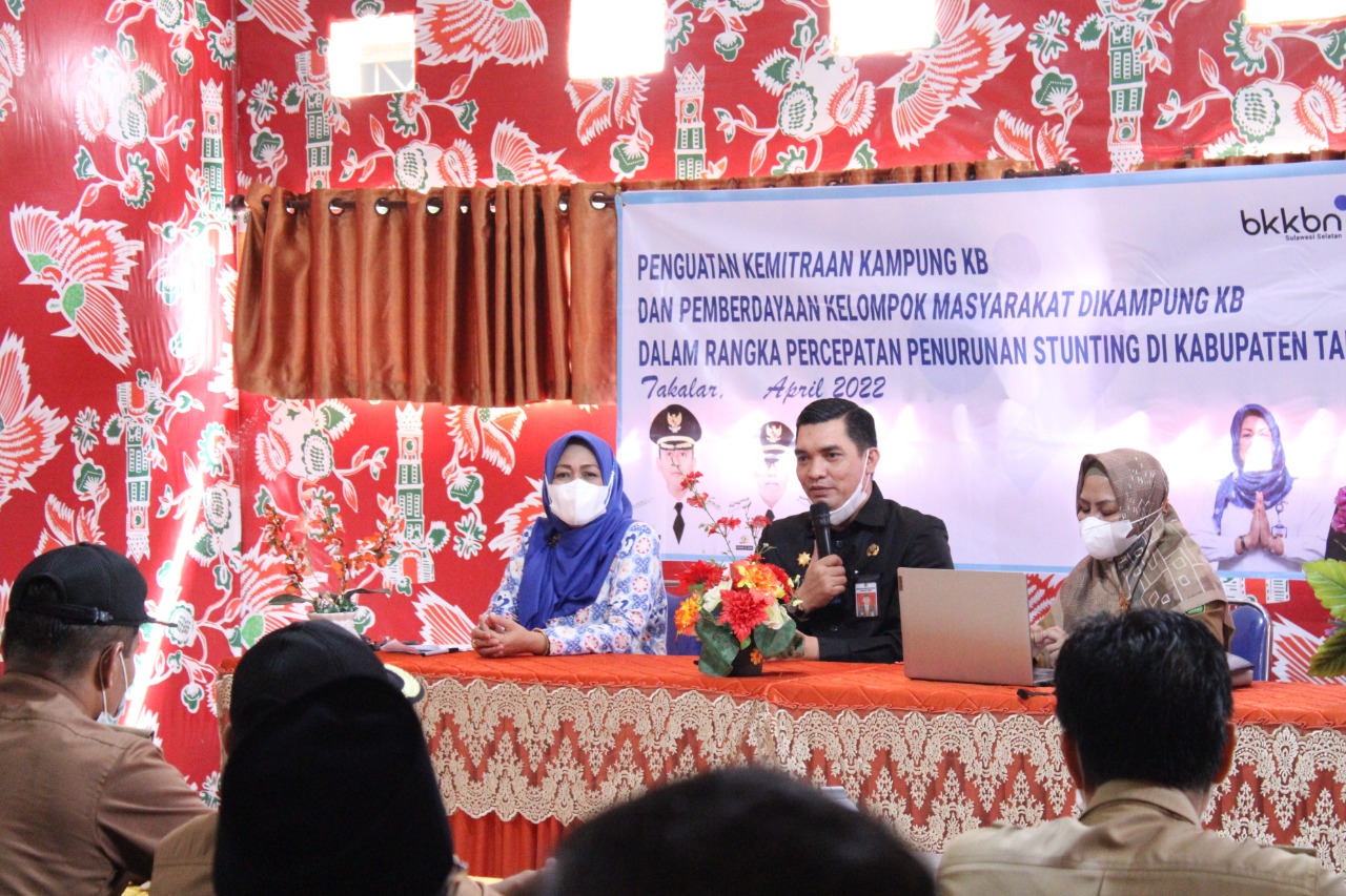 SULSELBERITA.COM. Takalar – Prokopim, 19 April 2022. Dalam rangka percepatan penurunan stunting di Kab. Takalar, Dinas PPPKBPA Kab. Takalar melaksanakan pertemuan sebagai penguatan kemitraan kampung KB dan pemberdayaan kelompok masyarakat dikampung KB yang dibuka secara langsung oleh Sekretaris Daerah Kab. Takalar H. Muhammad Hasbi S.STP. MAP di aula pertemuan Dinas PPPKBPA Kab. Takalar, Selasa 19 April 2022.