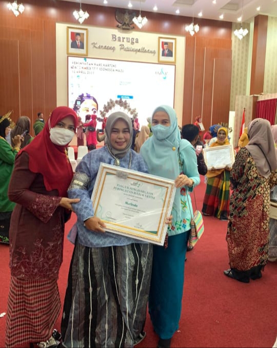 Pembina Sekolah Sungai dan Laut Kabupaten Takalar ini menerima Penghargaan yang diserahkan langsung oleh Ketua TP PKK Sulawesi Selatan, Ibu Naoemi Octarina disaksikan Gubernur Sulsel, Andi Sudirman Sulaiman, didampingi Kepala Dinas Lingkungan Hidup dan Pertanahan Kab. Takalar beserta Pengurus TP PKK Kab. Takalar pada Puncak Upacara Hari Kartini Tahun 2022 di Baruga Karaeng Pattingalloang, Rumah Jabatan Gubernur Sulsel, Makassar, Kamis (21/4/2022).