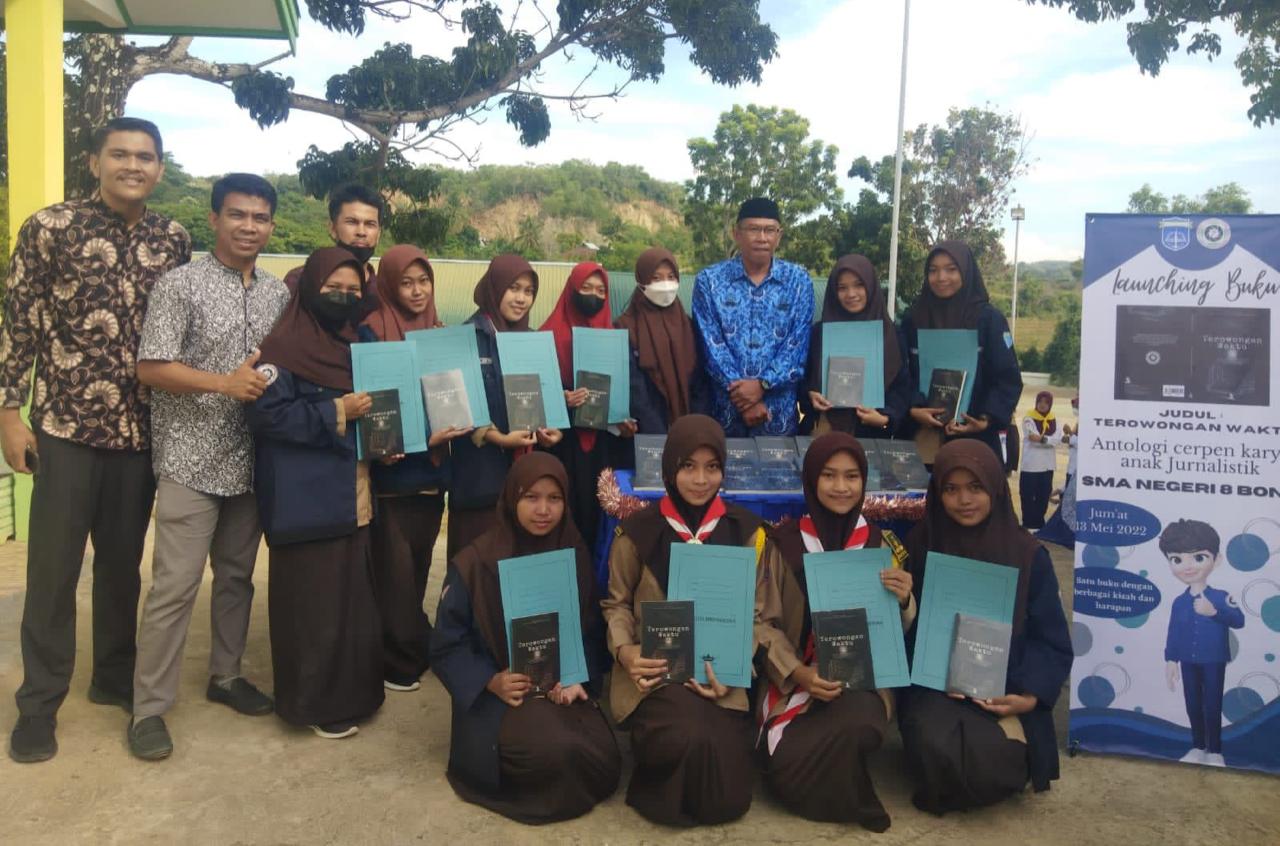 SULSELBERITA.COM. Bone – Siswa SMA Negeri 8 Bone yang tergabung dalam eskul Jurnalistik berhasil menerbitkan buku antologi cerpen dengan judul “Terowongan Waktu”.