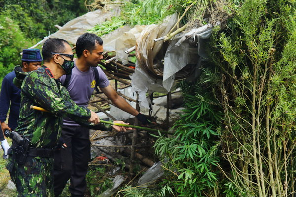 Jelang peringatan HANI 2022, Badan Narkotika Nasional (BNN) sebagai leading institution Pencegahan dan Pemberantasan Penyalahgunaan dan Peredaran Gelap Narkkba (P4GN) di Indonesia, menggencarkan upaya pemberantasan penyalahgunaan narkoba melalui berbagai cara, salah satunya pemusnahan ladang ganja.