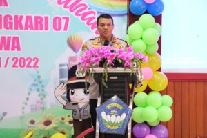 SULSELBERITA.COM. Gowa, — Kapolres Gowa AKBP Tri Goffarudin. P, S.I.K., M.H menghadiri langsung gelaran Wisuda murid tahun ajaran 2021/2022 TK Kemala Bhayangkari 07 Gowa.