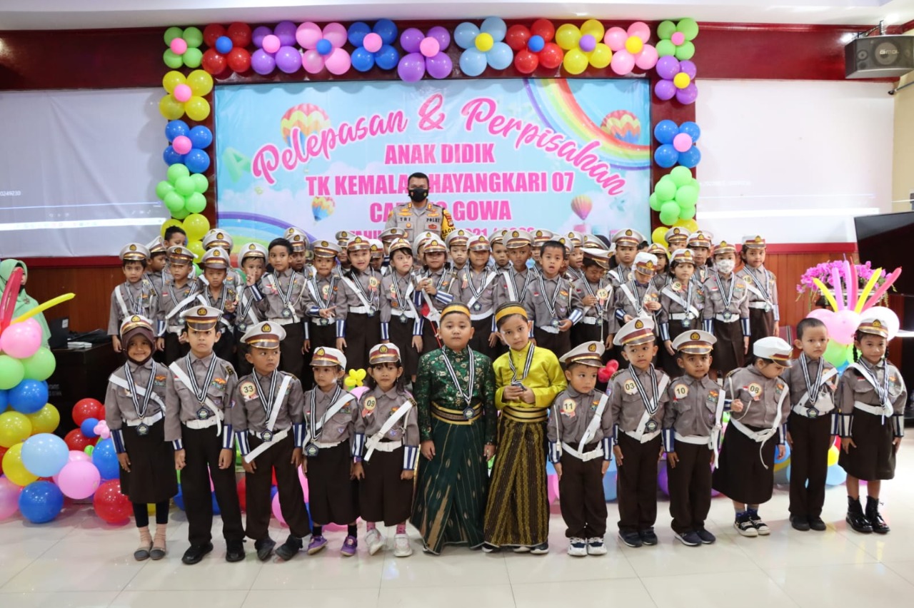 Sekitar 54 siswa-siswi TK Kemala Bhayangkari 07 Gowa ditamatkan yang digelar di Aula Endra Darmalaksana Polres Gowa, Jalan Syamsuddin Tunru, Kecamatan Somba Opu Kabupaten Gowa, Kamis (23/6).