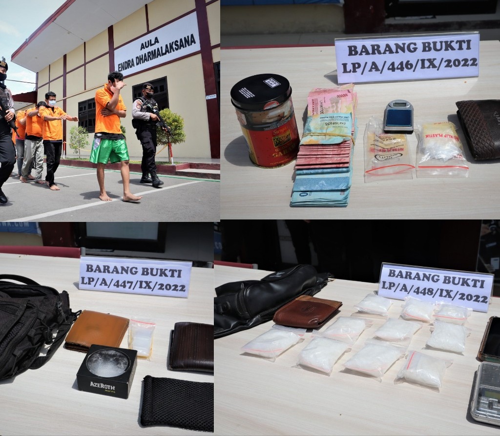 “Jadi ketiga pelaku tersebut diatas bekerjasama untuk mengedarkan narkotika jenis sabu dan keuntungan dari menjual narkotika tersebut dibagi untuk memenuhi kebutuhan sehari-hari,” jelas Wakapolres.