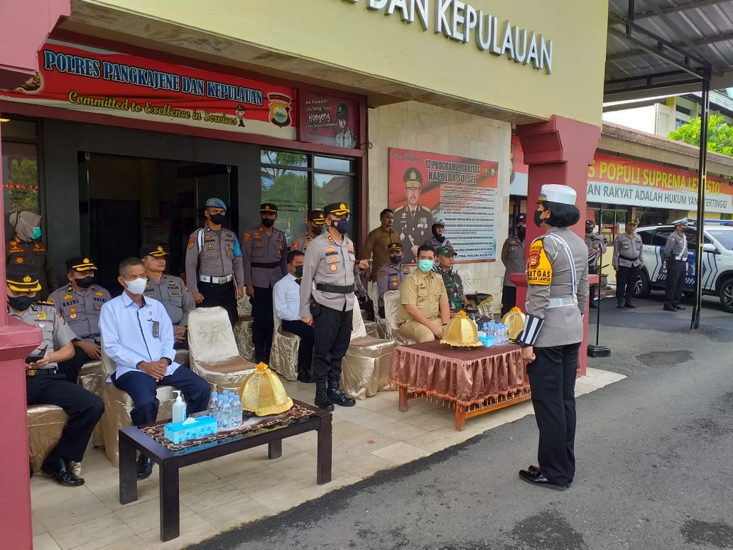Foto Kapolres Pangkep AKBP Ari Kartika Bhakti, S.I.K bertindak sebagai inspektur Apel Gelar Pasukan Ops Zebra 2022