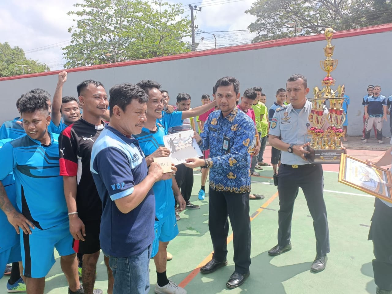 Hadiah berupa piala bergilir serta piagam penghargaan diberikan langsung secara simbolis oleh Plt. Kalapas Takalar, Ashari kepada tim futsal blok B selaku pemenang, usai pelaksanaan upacara peringatan hari kesaktian pancasila tahun 2022, Sabtu 30 September kemarin.
