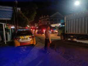Dimalam hari, Personil Polsek Bajeng Terus Berupaya Mengatur Lalulintas Guna Mencegah Kemacetan