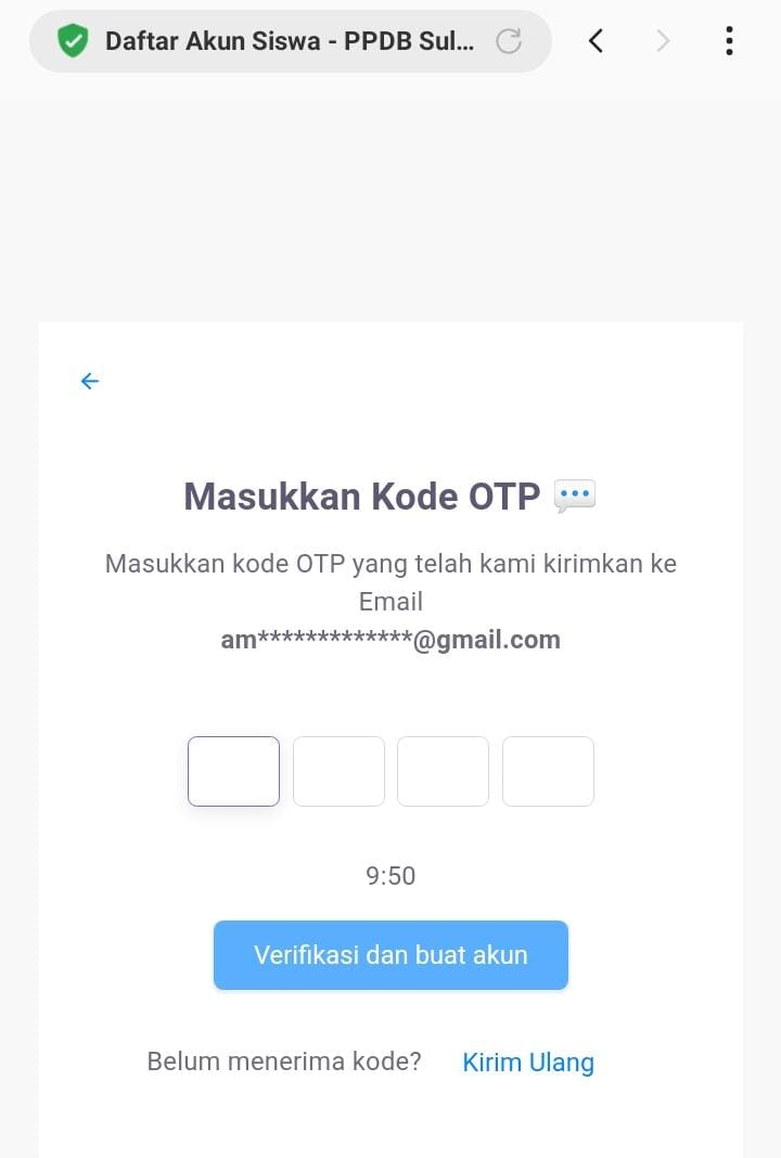 Satu diantara orang tua calon siswa baru mengatakan, sampai saat ini dirinya belum bisa melakukan pendaftaran akun untuk anaknya dikarenakan pihak operator provider belum mengirimkan kode OTP ke email yang bersangkutan.