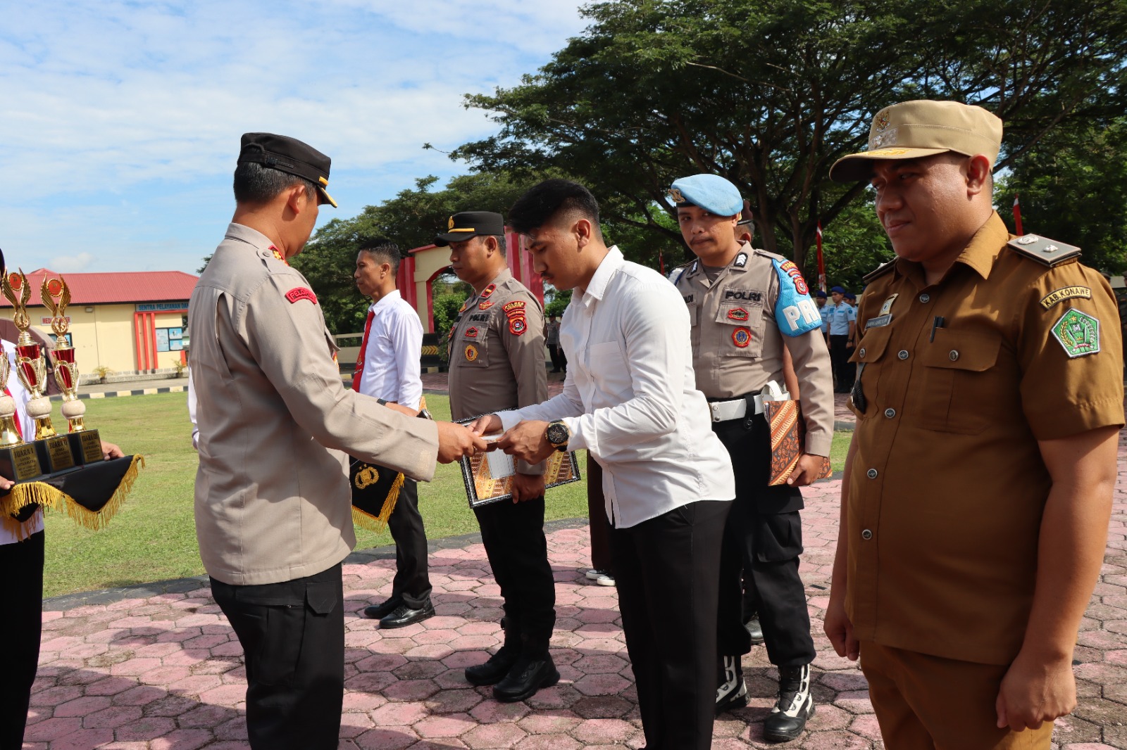 Kegiatan apel tersebut dirangkaikan juga dengan pemberian penghargaan kepada Anggota Polres Konawe sebanyak 39 orang yang berprestasi, serta penghargaan kepada beberapa lomba dalam rangka Hari Bhayangkara yang ke – 77 Tahun 2023, sbb: