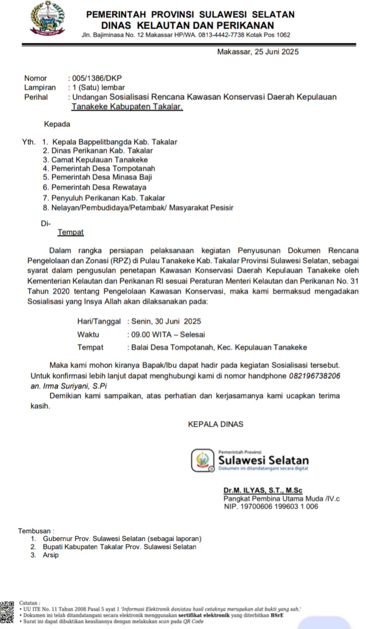 Ada Apa? DKP Takalar "Abaikan" Undangan DKP Propinsi Terkait Sosialisasi Rencana Penetapan Kawasan Konservasi daerah (KKD) di Kepulauan Tanakeke