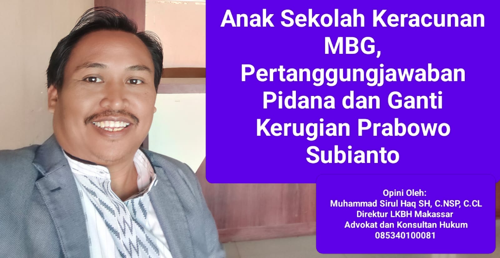 Opini: Anak Sekolah Keracunan MBG, Pertanggungjawaban Pidana dan Ganti Kerugian Prabowo Subianto
