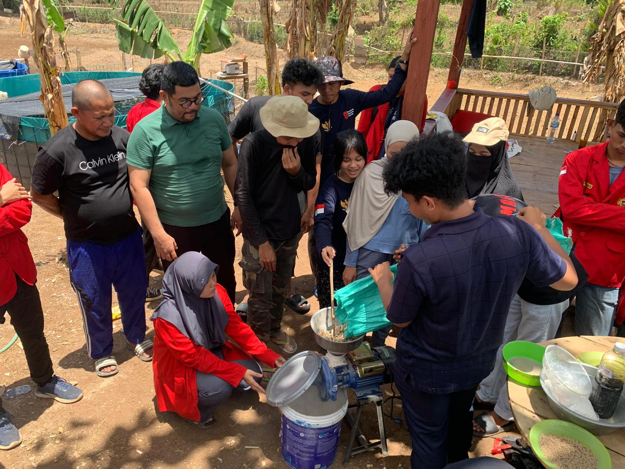 Para mahasiswa Venom Community secara aktif mendemonstrasikan tahapan proses, mulai dari pengeringan, penepungan, pencampuran, hingga pencetakan pelet. Antusiasme warga desa, terutama para peternak, terlihat jelas selama sesi praktik.
