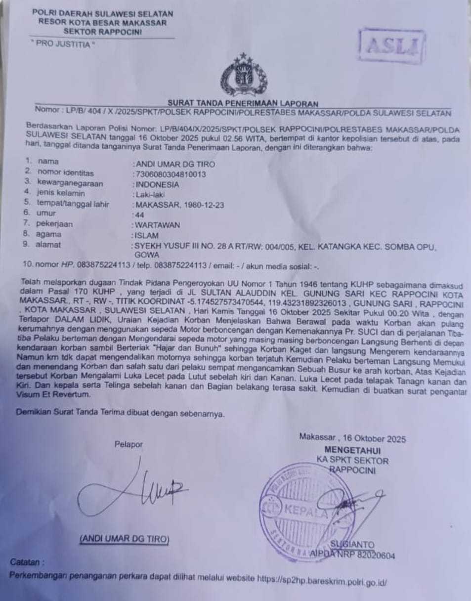 Makassar Sangat Tidak Aman, Geng Motor Kuasai Jalanan, Wartawan Jadi Korban