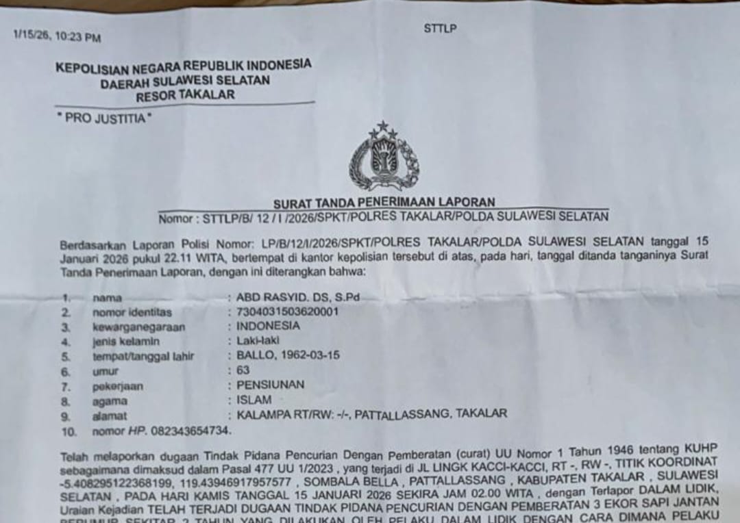 Pelapor Kecewa, Laporan Curnak di Polres Takalar Tak Kunjung Berproses
