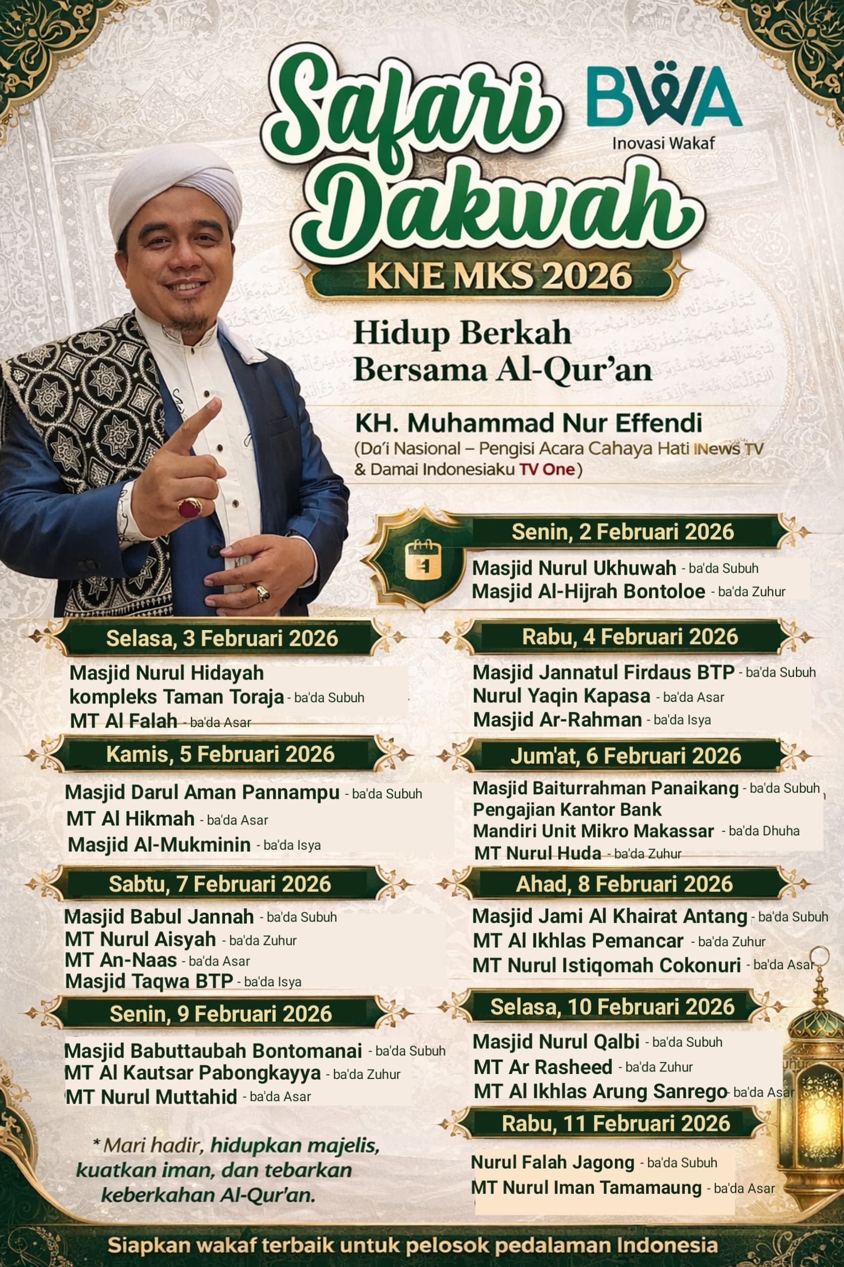 Roadshow Safari Dakwah BWA Makassar Sasar 4 Daerah di Sulsel, Gandeng Dai Nasional KH Muhammad Nur Effendi