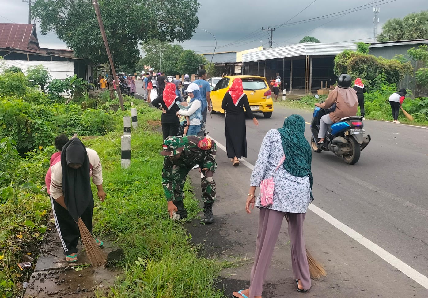 KERJA BAKTI SERENTAK, LURAH PAPPA BERSAMA SELURUH STAF DAN GURU-GURU SEKOLAH BERSIHKAN SAMPAH DI PINGGIR JALAN