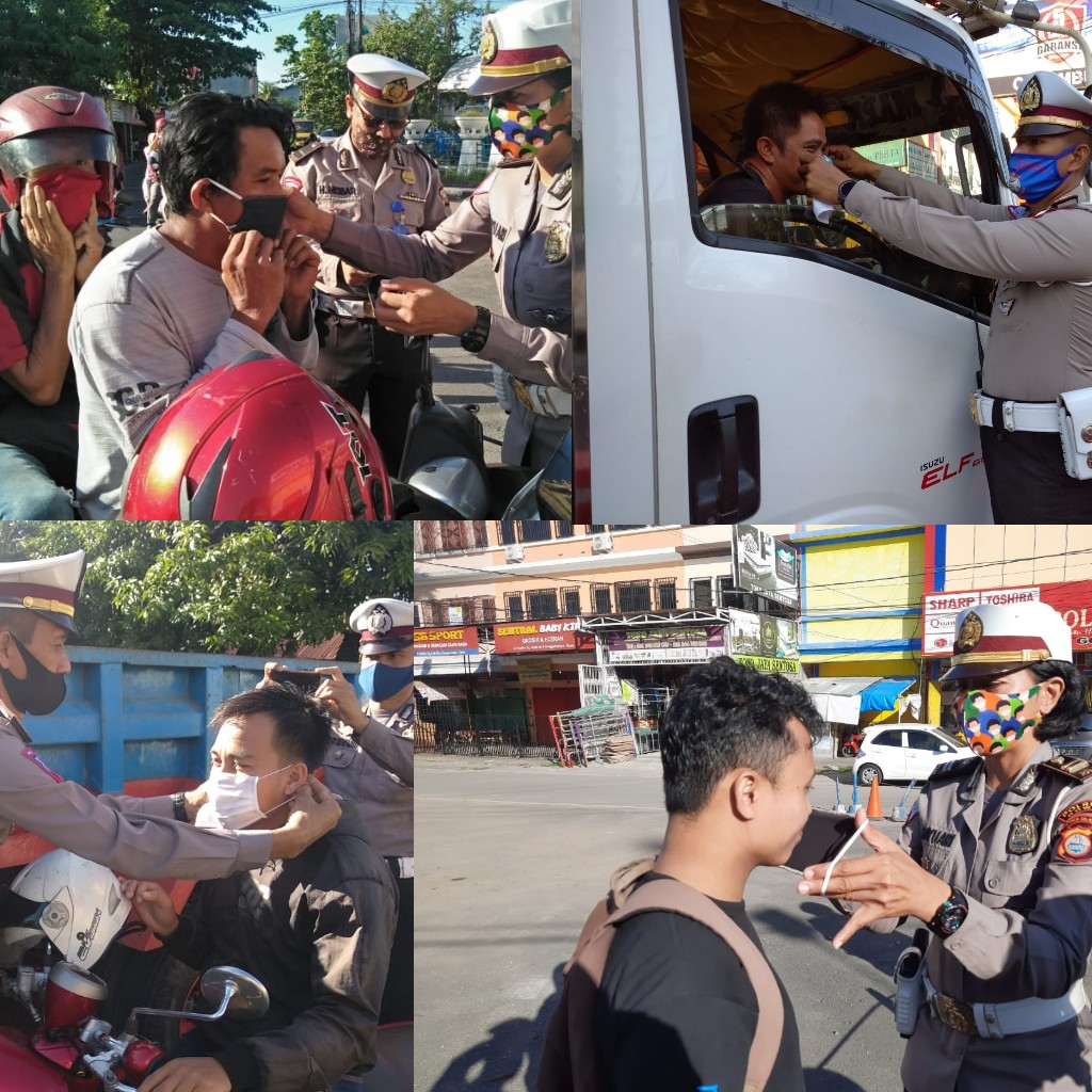 Sambut Hari Bhayangkara Ke 74, Satlantas Polres Gowa Bagi Masker ke Pengendara