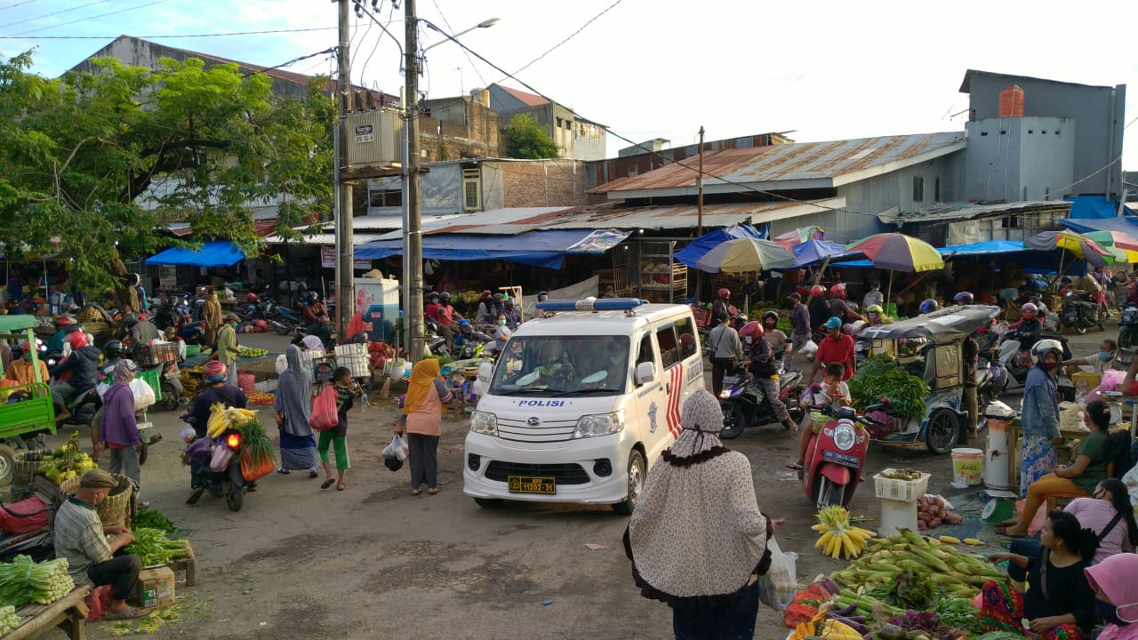 Kunjungi Pasar Minasa Maupa, Sat Lantas Polres Gowa Edukasi Pengunjung Pentingnya Protokol Kesehatan Diterapkan