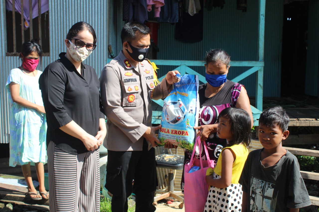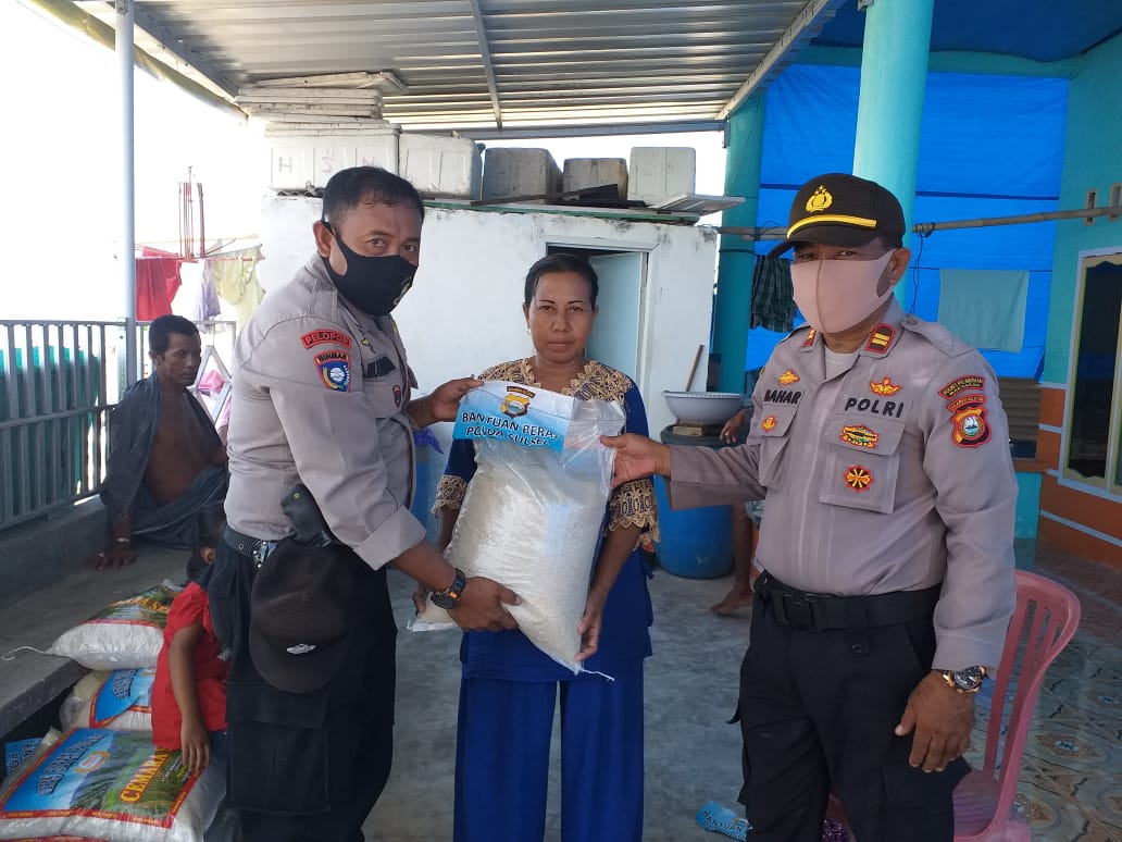 Kurangi Beban Dampak Covid, Bhabinkamtibmas Pulau Barrang Caddi Salurkan Sembako