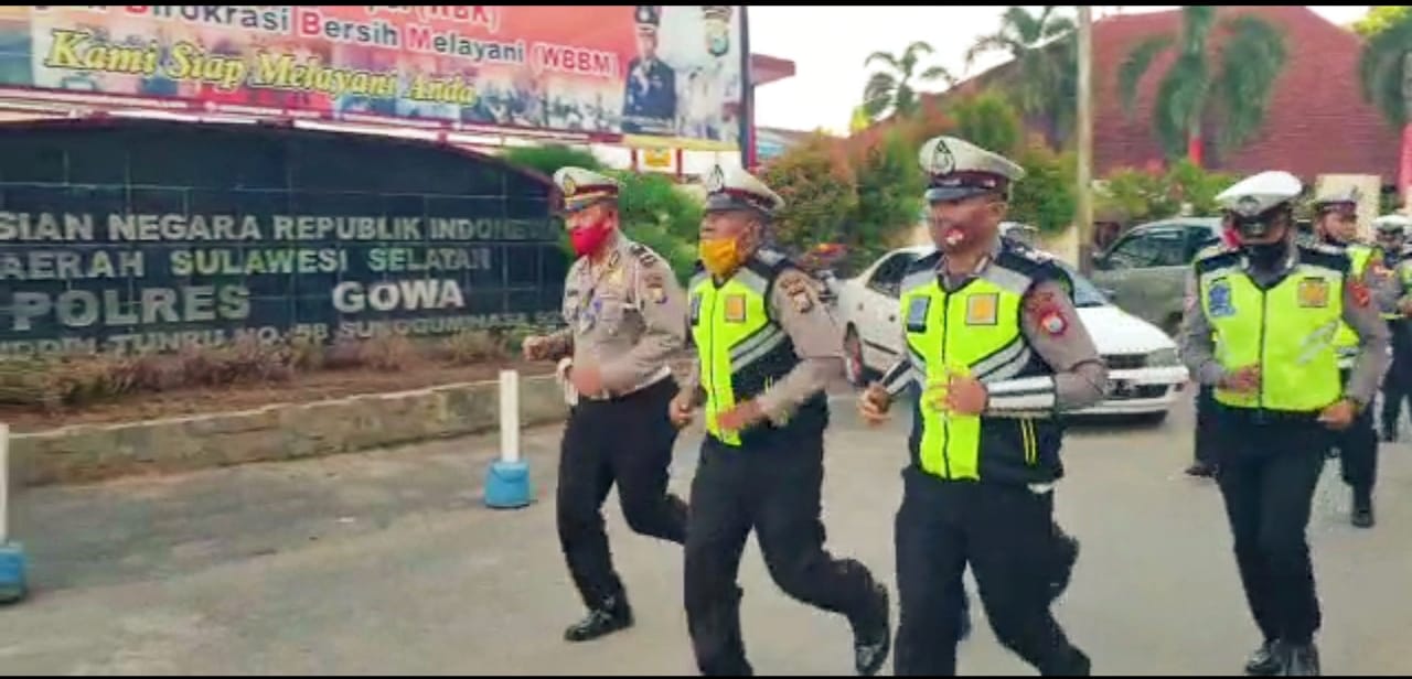 Awali Tugas Pagi Hari, Satlantas Polres Gowa Bakar Semangat Dengan Lari Pagi