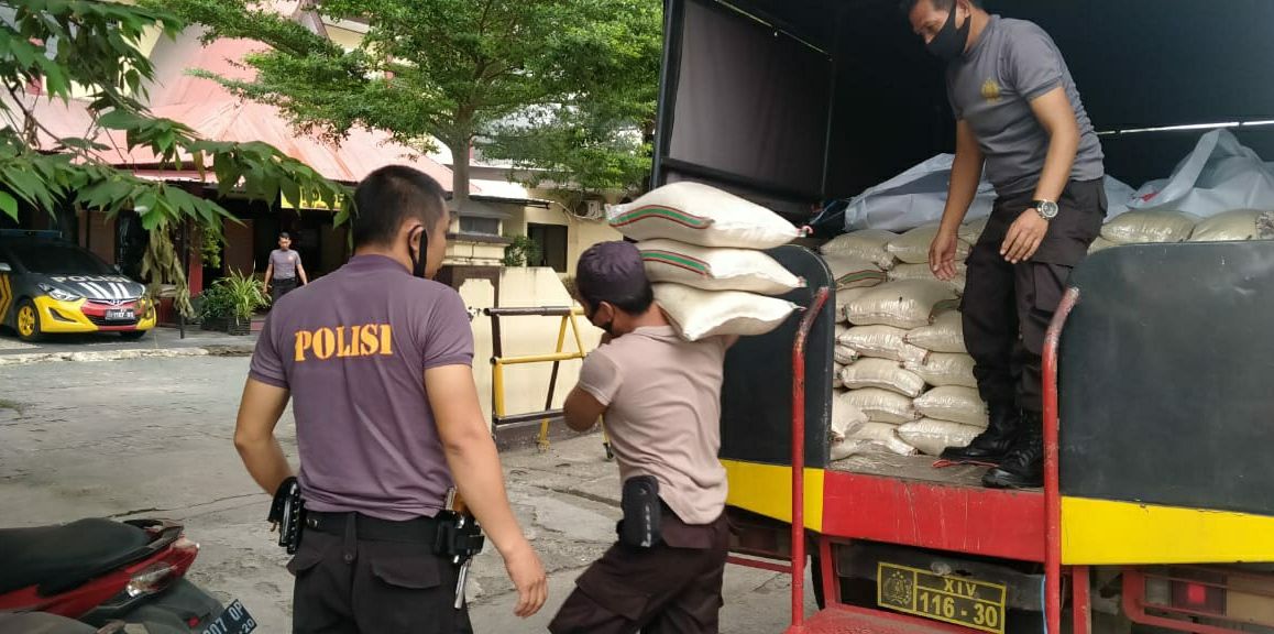 Siagakan 10 Ton Beras, Polsek Wajo Salurkan Bansos Polres Pelabuhan Makassar