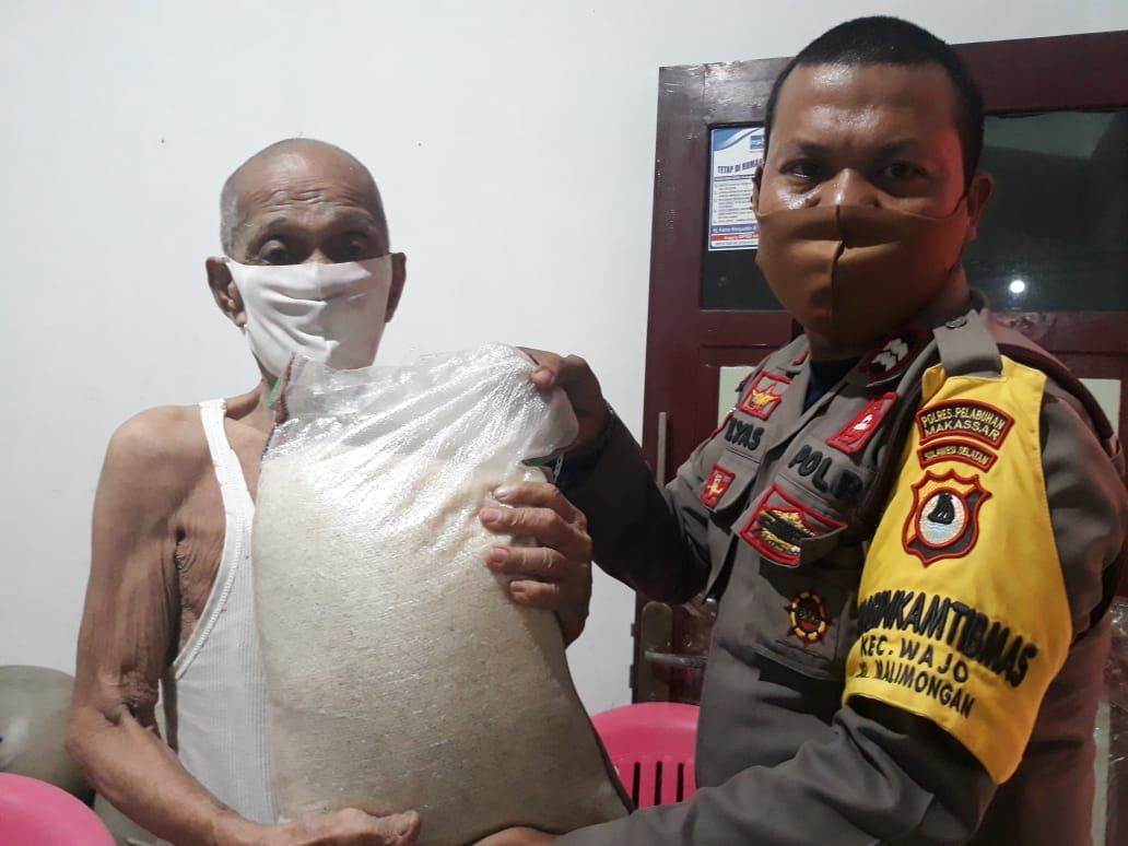 Gerakan Berbagi 1 Ton Beras, Bhabinkamtibmas Camba Berua Salurkan Bantuan Sembako Mabes Polri
