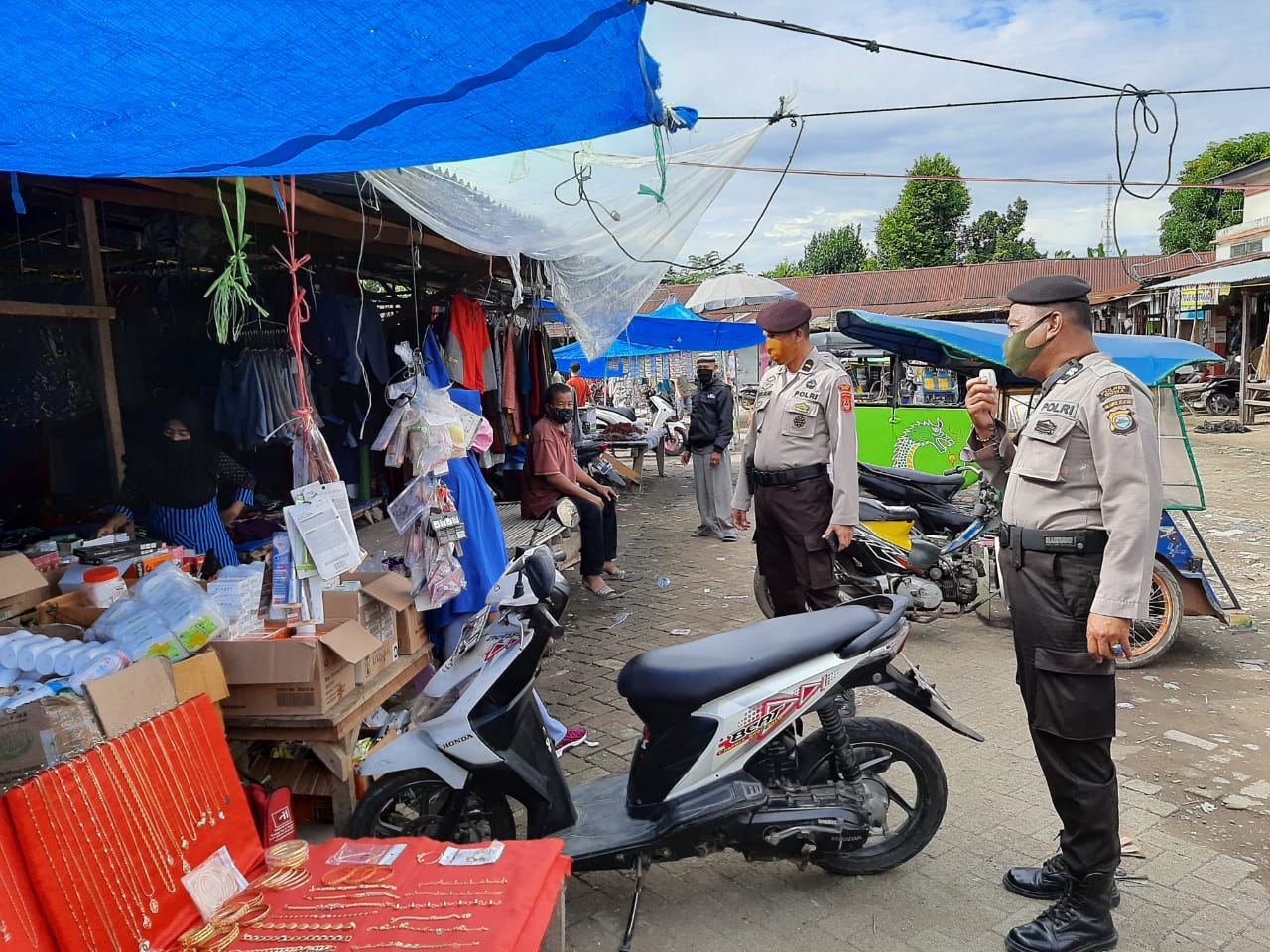 Sambangi Pasar Sentral Limbung, Personil Polsek Bajeng Lakukan Sosialisasi Protokol Kesehatan
