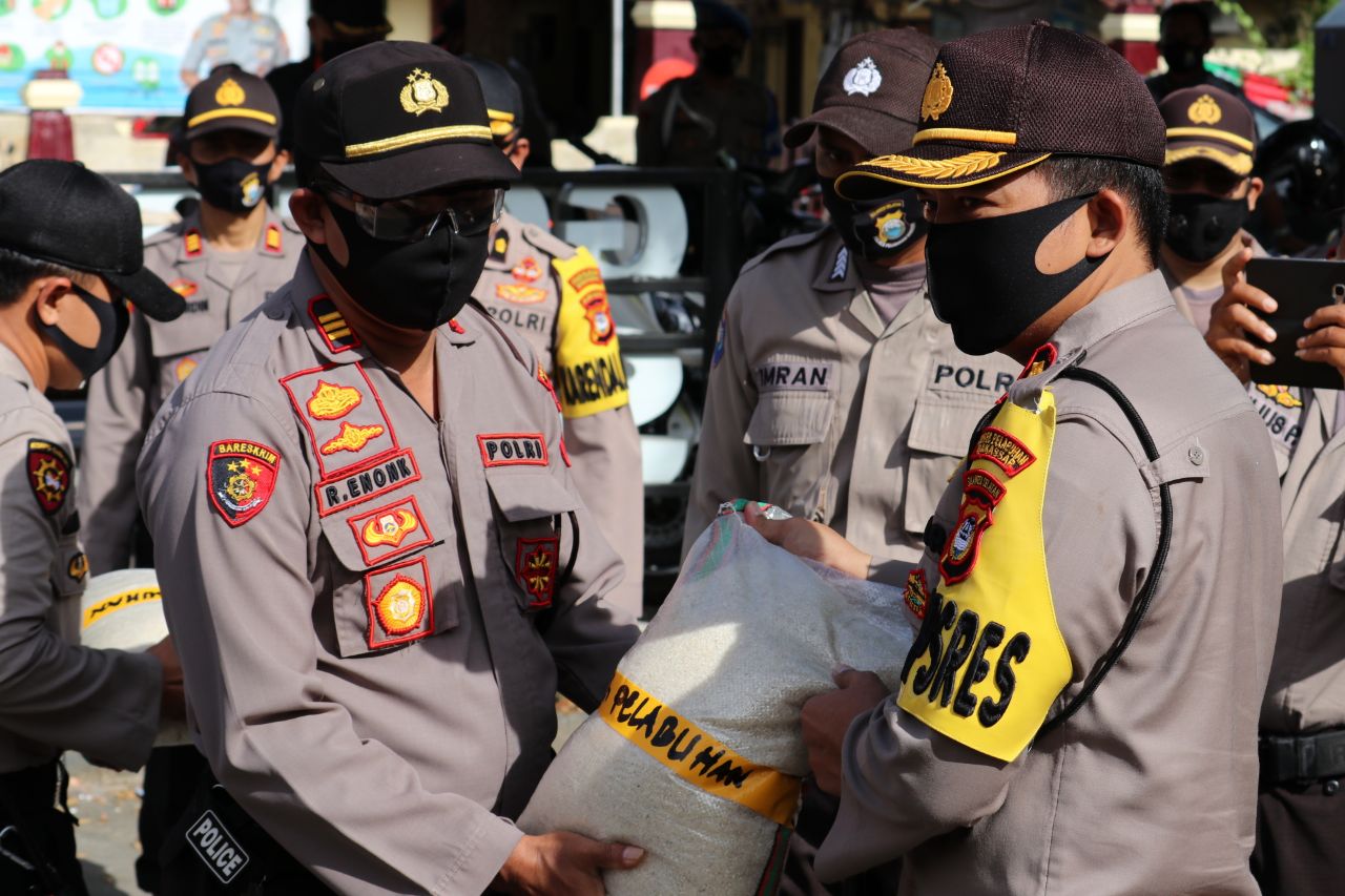 Polres Pelabuhan Ikut Bagikan Bansos dari Mabes Polri untuk Warga Terdampak Covid-19