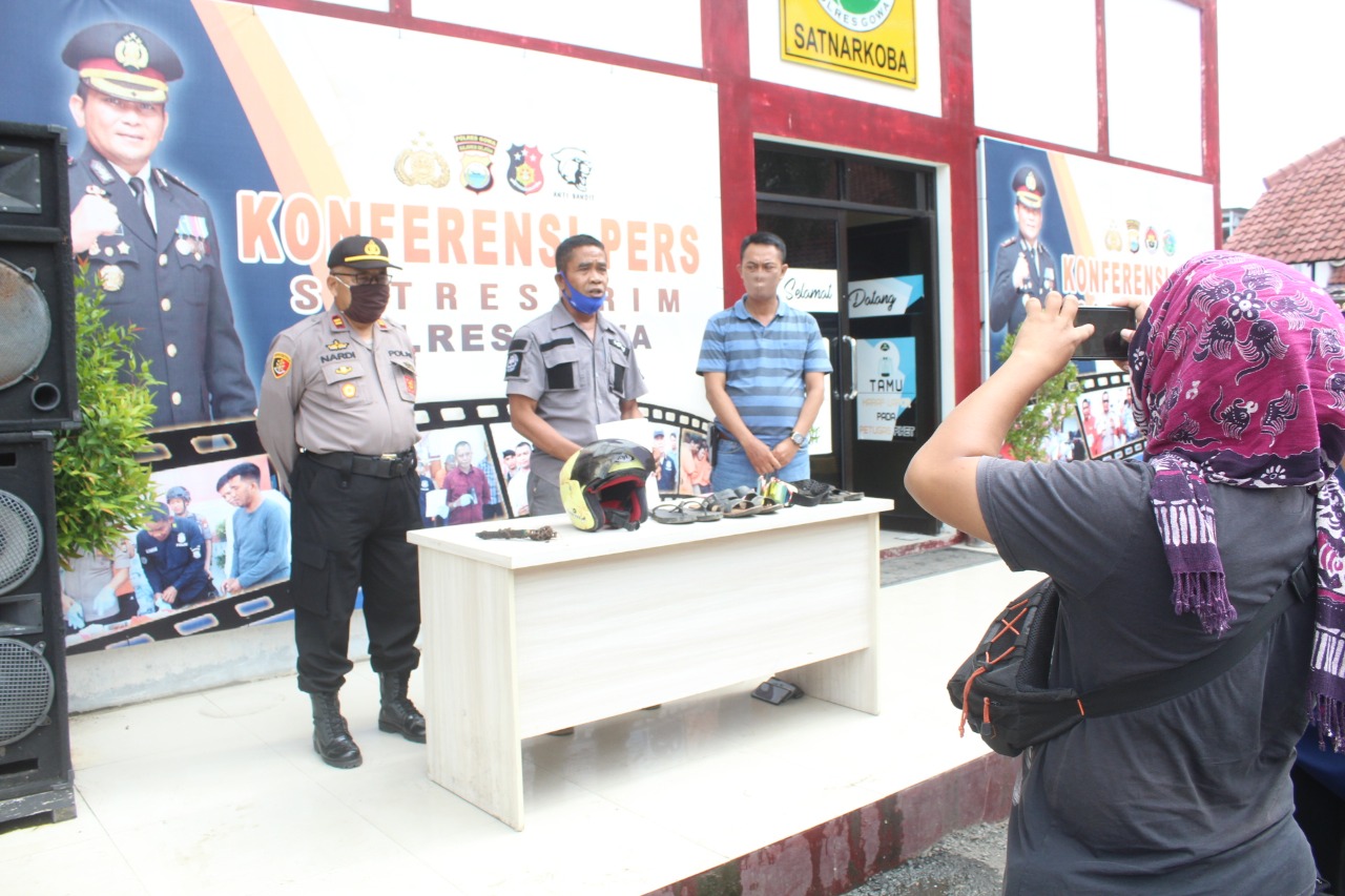 Gelar Konferensi Pers, Polres Gowa Terapkan Social Distancing