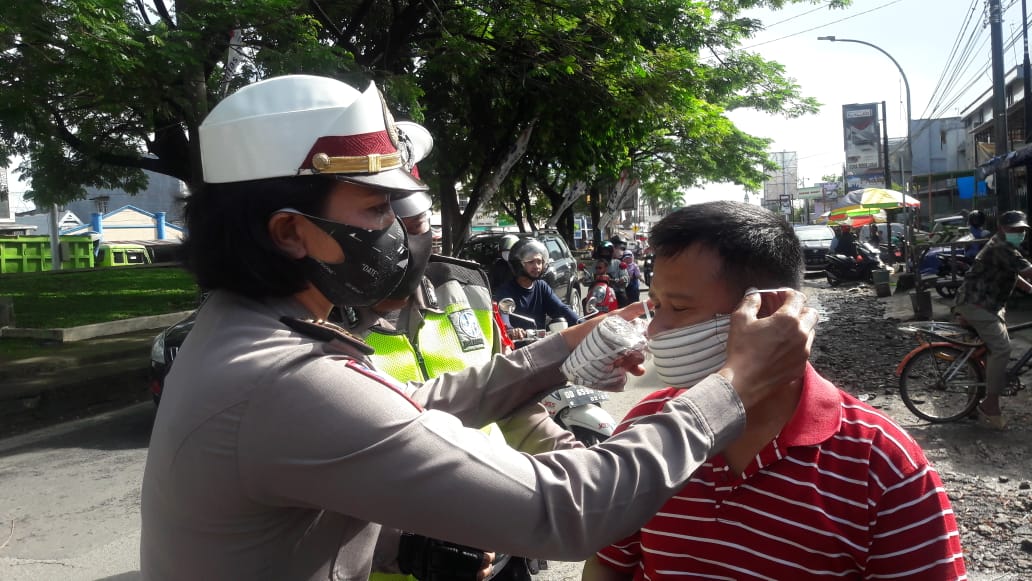 Ops Ketupat Lipu 2020, Sat Lantas Polres Gowa Tegur dan Bagi Masker untuk Pengendara