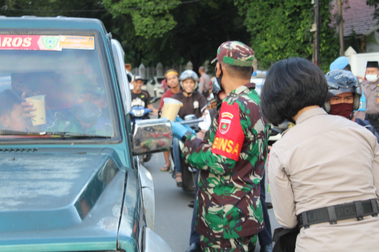 Sinergitas TNI-POLRI, Polres Maros dan Kodim 1422 Maros Bagi Takjil untuk Masyarakat