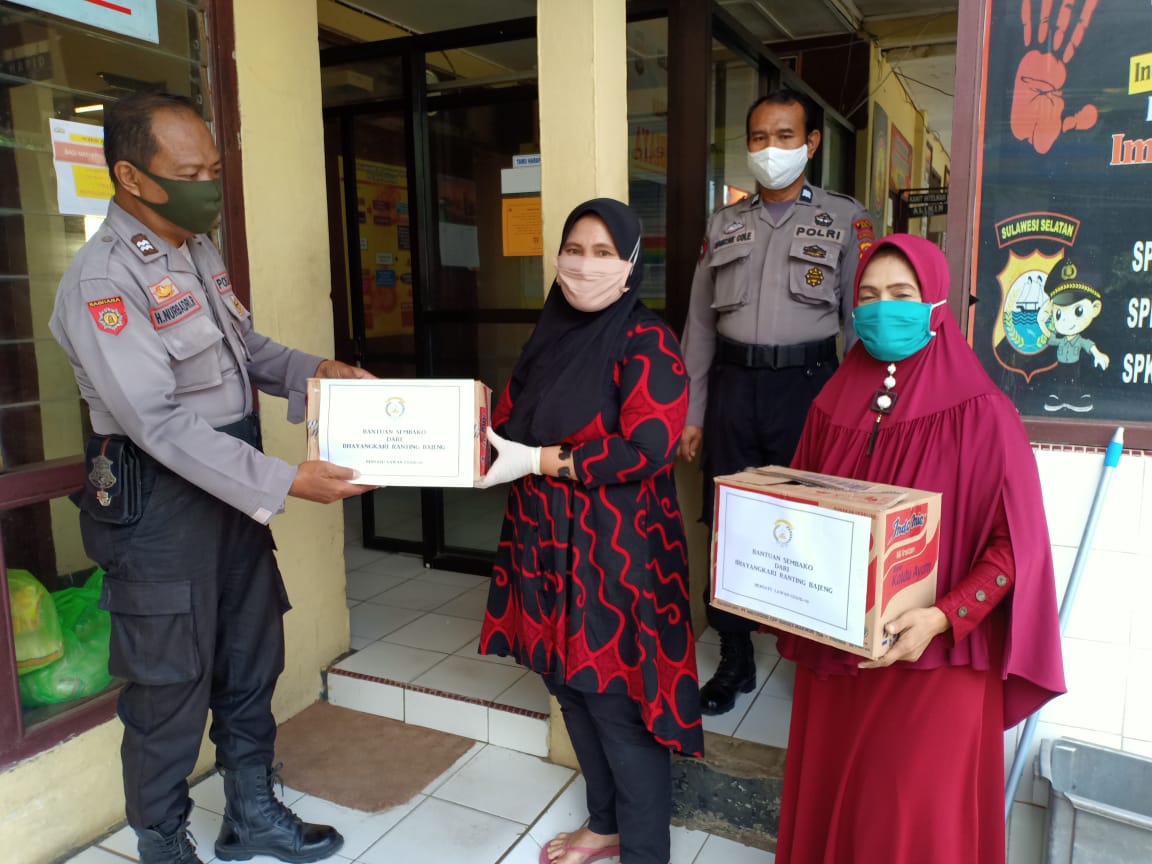 Ringankan Beban Masyarakat, Bhayangkari Polsek Bajeng Serahkan Paket Sembako